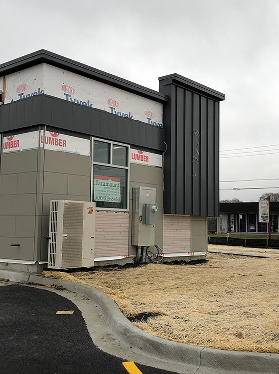 Ground up construction of a new 675 sf retail building in North Aurora, IL. Site improvements included soil remediation from a former gas station, all new site utilities and a parking lot to accommodate a new drive thru coffee shop. Wood framed building construction included a full commercial kitchen with installation of all specialty equipment for a retail coffee shop.