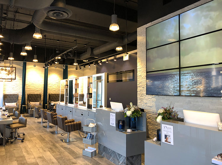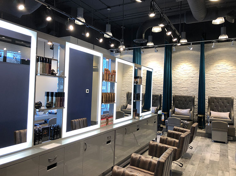 Build out of a 2,600 sf salon & spa in downtown Naperville, IL. Project features include virtual technology and video walls designed to transport clients to distant places for relaxing, immersive experiences as well as a variety of other high end features.